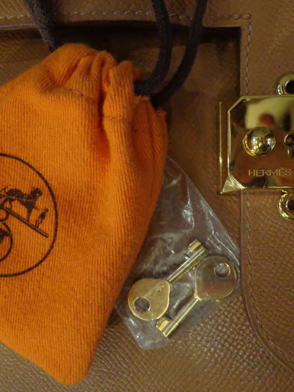 Bolso de Hermès con cierre con llaves originales. Restaurado por Hermès. 38 cm de largo, 28 cm de alto con fuelle de 16 cm. En su estado.